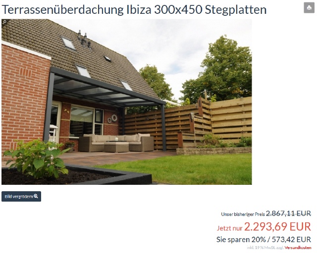 Terrassenüberdachung Ibiza 300x450 Stegplatten