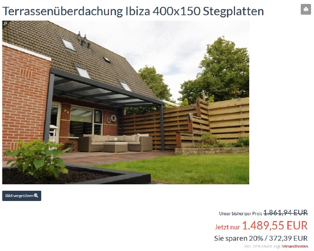 Terrassenüberdachung Ibiza 400x150 Stegplatten