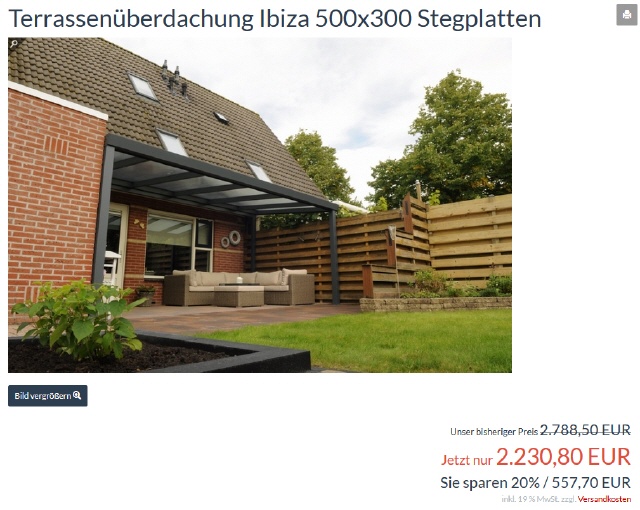 Terrassenüberdachung Ibiza 500x300 Stegplatten