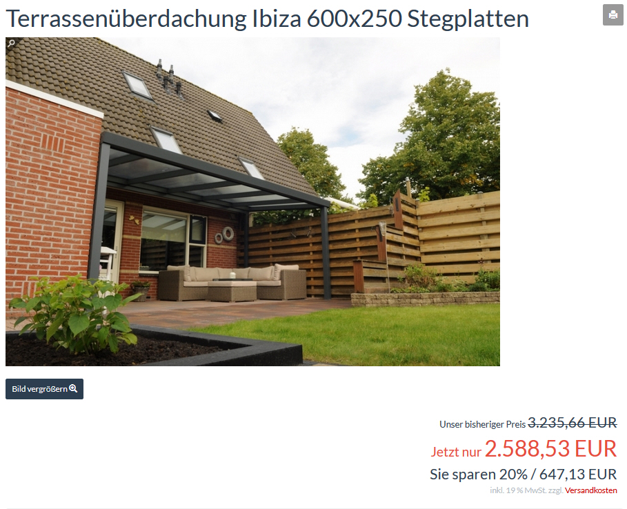 Terrassenüberdachung Ibiza 600x250 Stegplatten