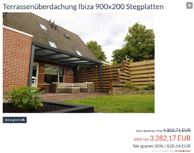 Terrassenüberdachung Ibiza 900x200 Stegplatten
