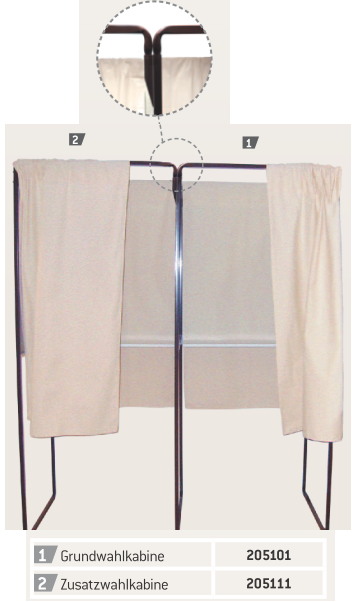 > Es besteht die Möglichkeit, an die Grundwahlkabine Zusatzwahlkabinen zuzufügen.